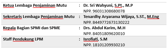 – STRUKTUR ORGANISASI LEMBAGA PENJAMINAN MUTU UNDARIS – berikut adalah Staff LPM pada tingkat Universitas,